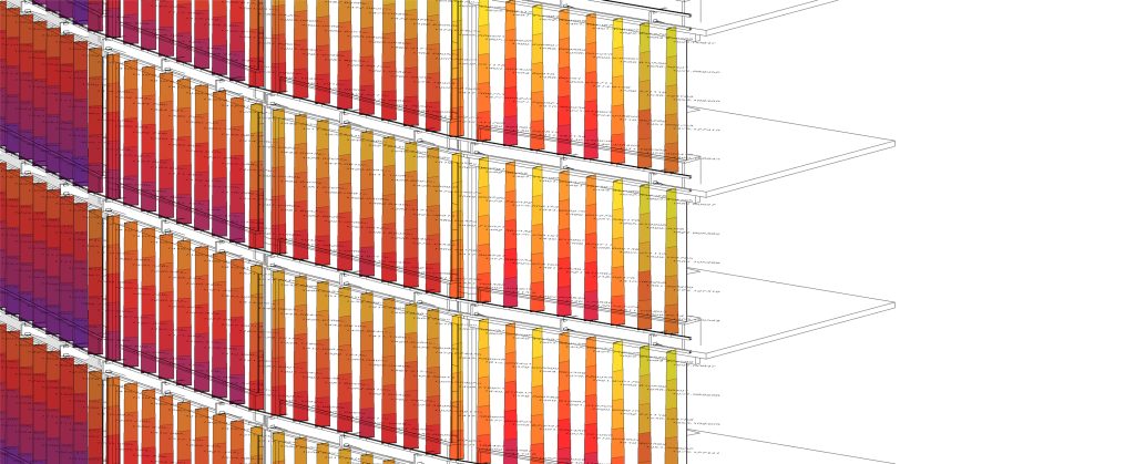 The system is validated through solar analysis. Each louver position is tested against radiation data, revealing how much heat the building avoids while maintaining daylight and visibility. Instead of guessing, the design is measured, compared, and proven.